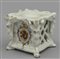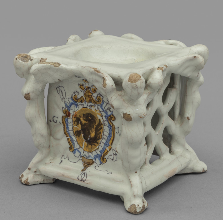 Saliera in ceramica bianca decorata con stemma in policromia Faenza sec.XVII