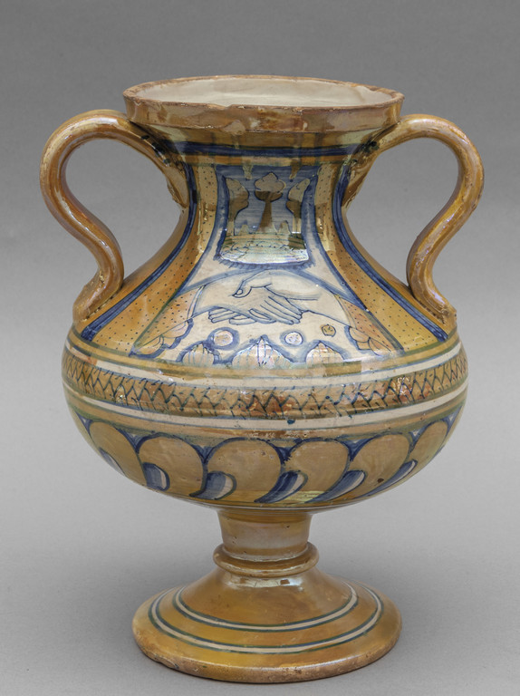 Coppa con manici in ceramica decorata in policromia a lustro Deruta 1530/1560