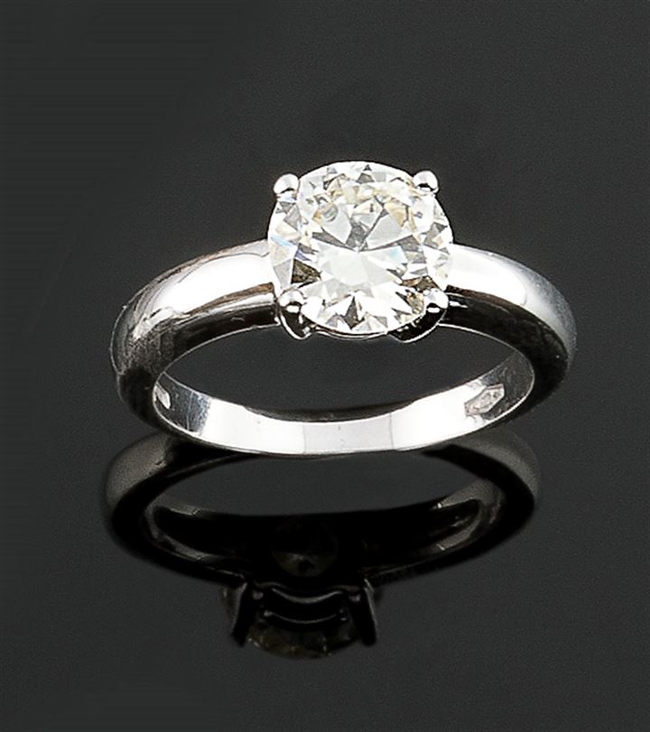 Anello in oro bianco con al centro diamante solitario taglio brillante di ct 2,20 ca