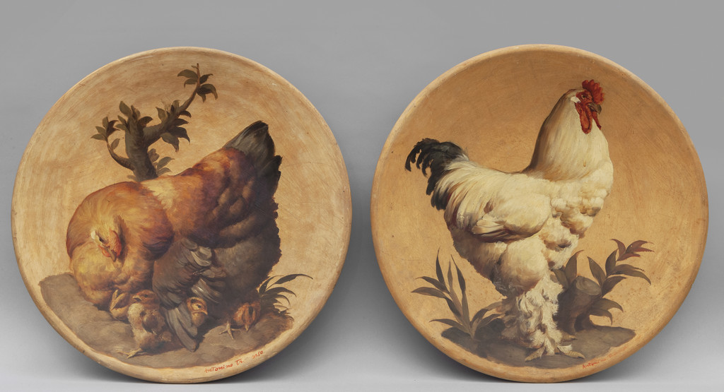 coppia di grandi piatti in terracotta dipinta diam. cm.50