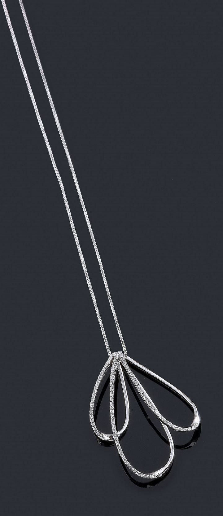 Lotto 888 | CATENA CON CIONDOLO Catena con ciondolo in oro bianco recante tre petali...