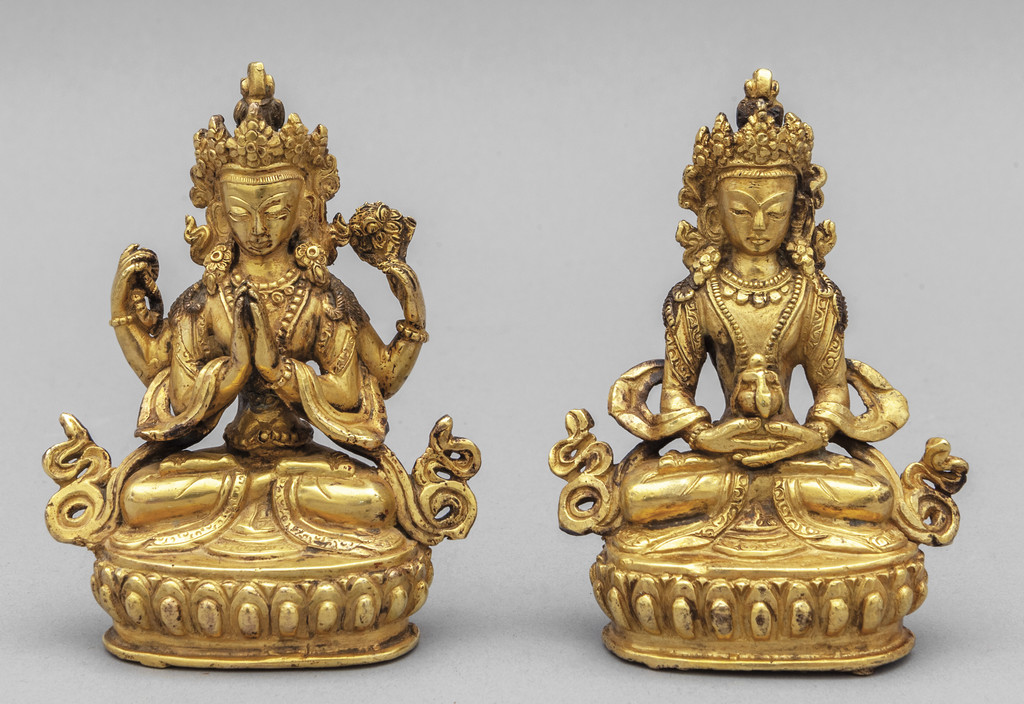 Coppia di divinità in bronzo dorato Tibet sec.XIX