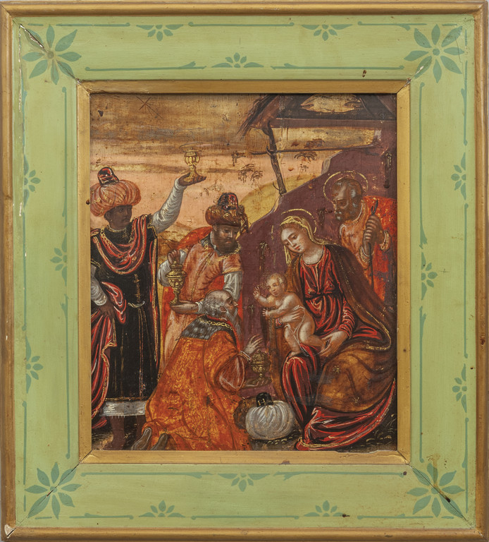 Scuola dalmata sec.XVIII 'Sacra Famiglia con i Re Magi' olio