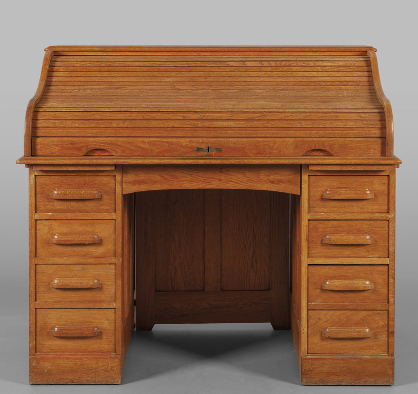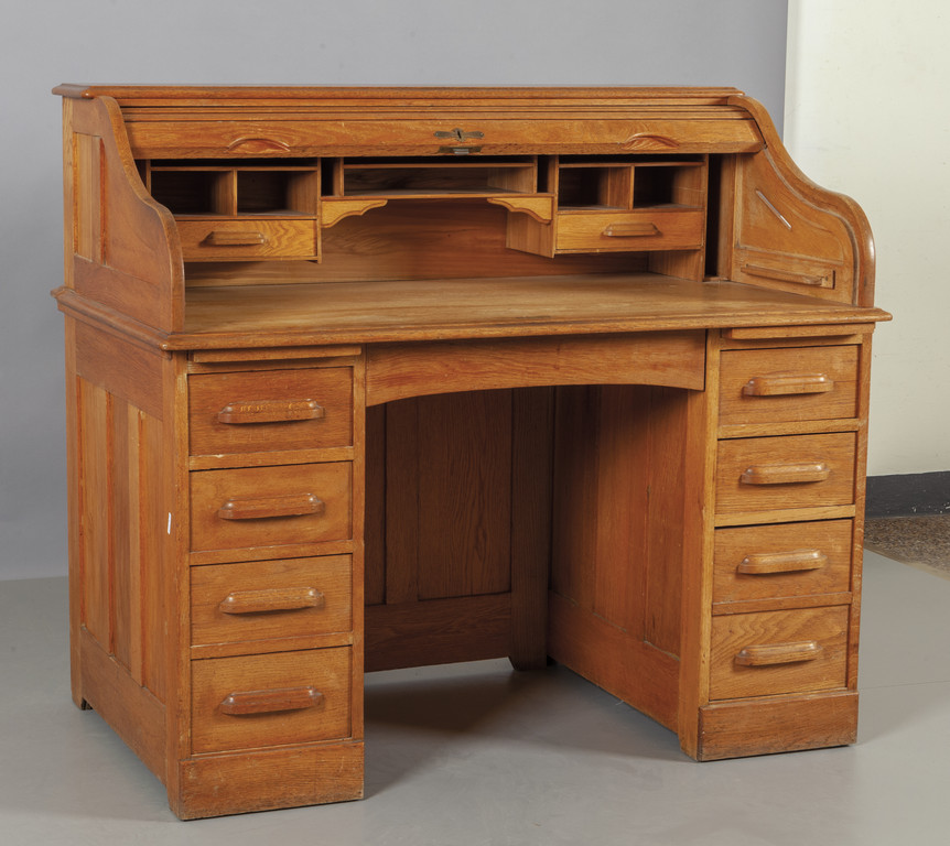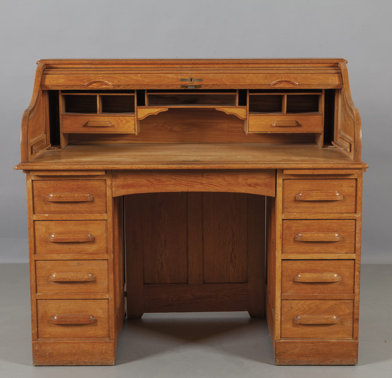 Scrivania americana a bancone da centro in pichpine f.ta Felge Desk Co. U.S.A.