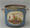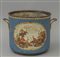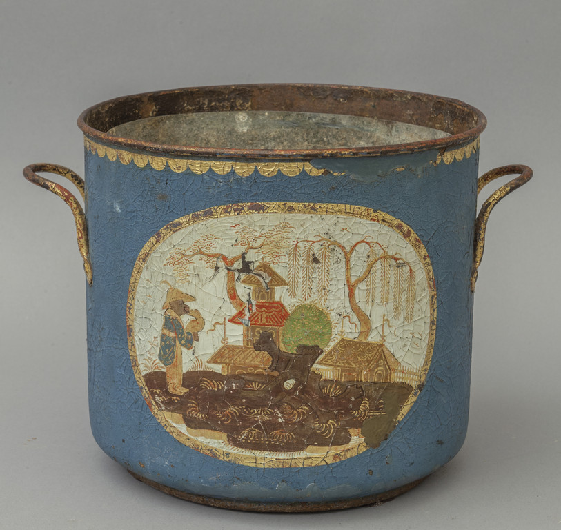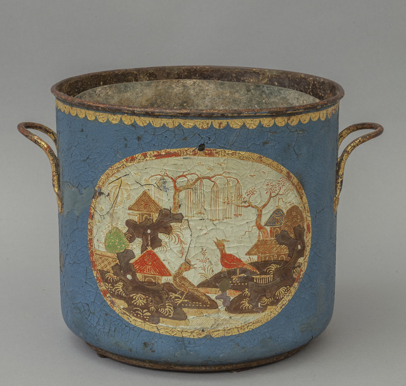 Rinfrescatoio in metallo dipinto in policromia con con al centro paesaggio orientale Francia inizi sec.XIX