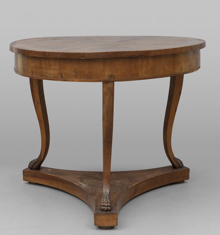 Tavolo Carlo X da centro lastronato ed intarsiato con stella sul piano tre gambe con piedi ferini sec.XIX