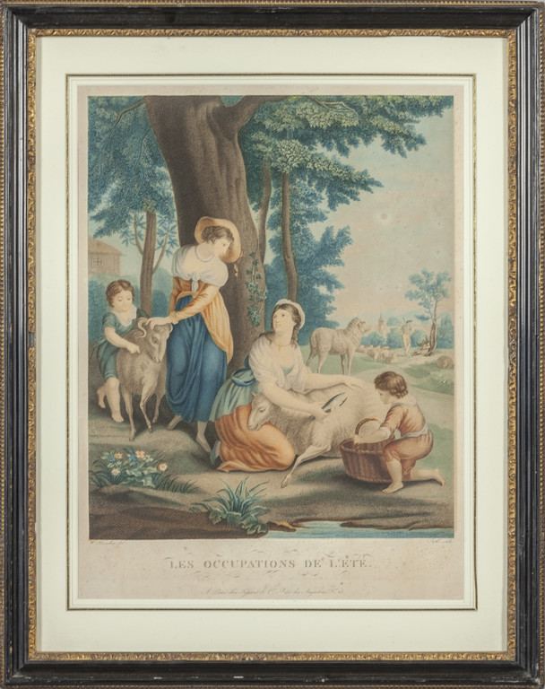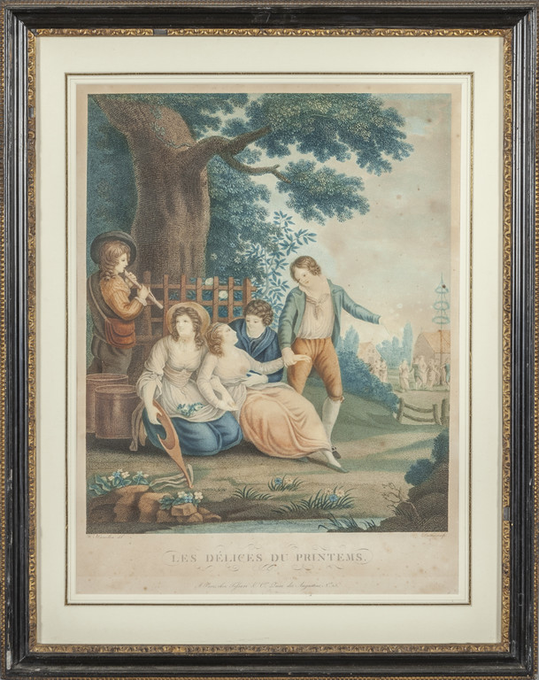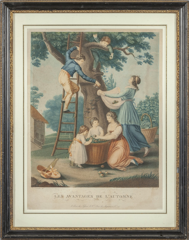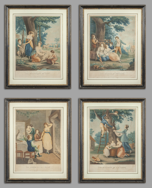 'Le quattro stagioni' quattro stampe acquarellate Francia sec.XIX inc. Outhé