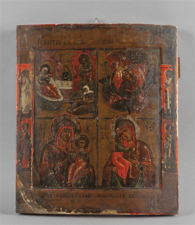 Icona raffigurante la vita della Vergine con quattro Santi Russia sec.XIX