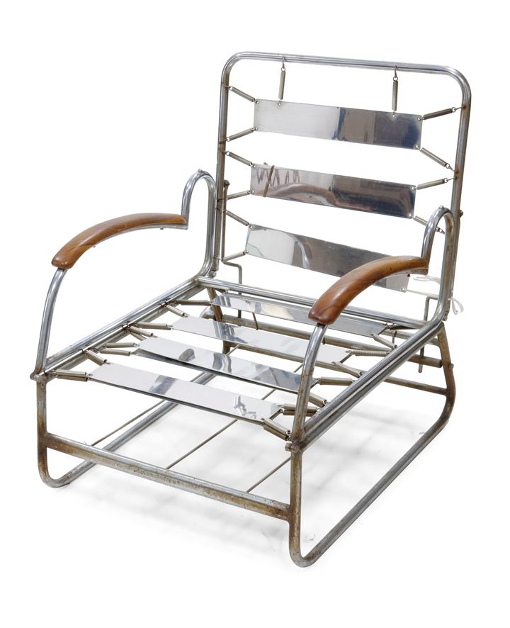 Lotto 1011 | POLTRONA Poltrona in tubo metallico cromato. Braccioli in legno di faggio....