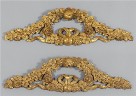 Coppia di grandi fregi in legno intagliato e dorato inizi sec.XIX