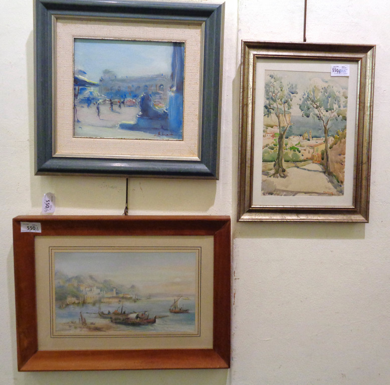 'Marina' e 'Strada alberata' due acquarelli e un dipinto moderno