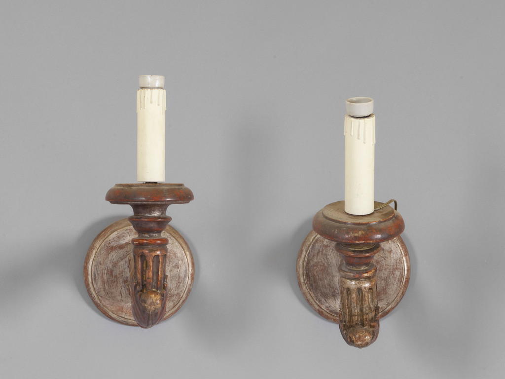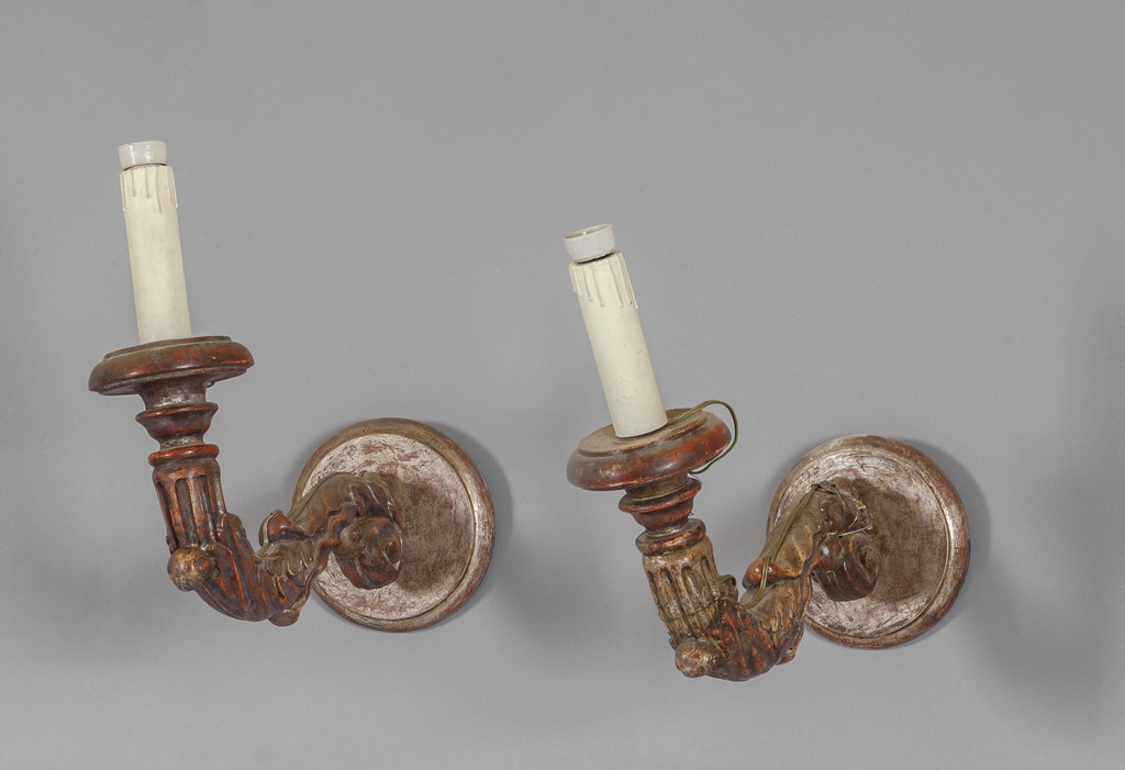Coppia di bracci portaluce in legno intagliato e dorato a mecca sec.XVIII