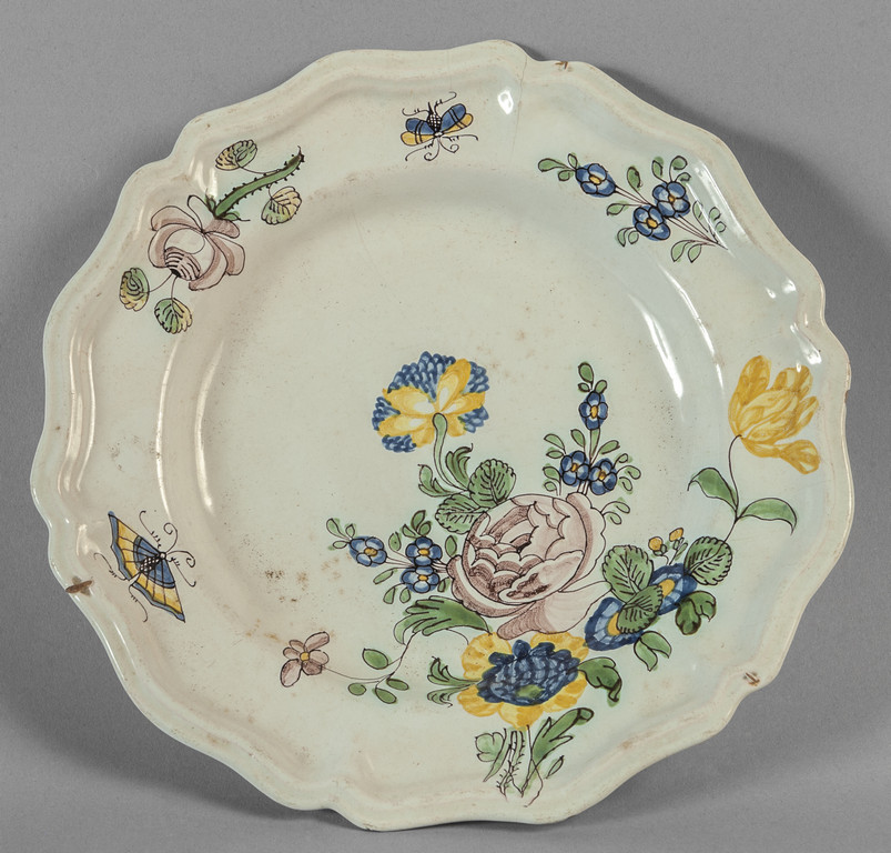 Piatto in ceramica decorata a fiori policromi su fondo bianco Bassano sec.XVIII