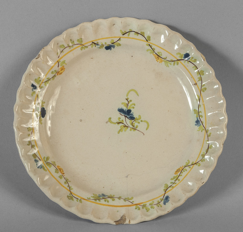 Piatto in ceramica a decoro fior di patata su fondo bianco Savona sec.XVIII