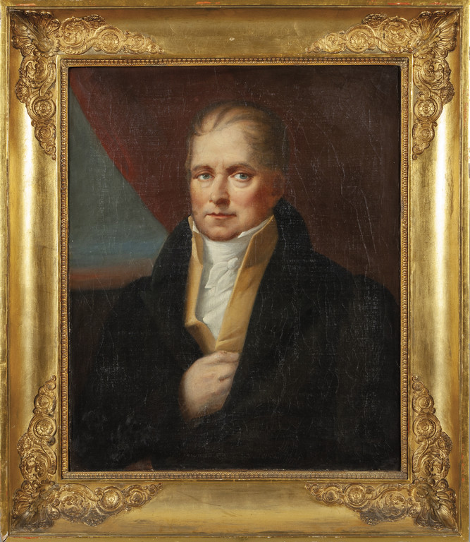 Scuola francese inizi sec.XIX 'Ritratto di gentiluomo con occhi azzurri' olio
