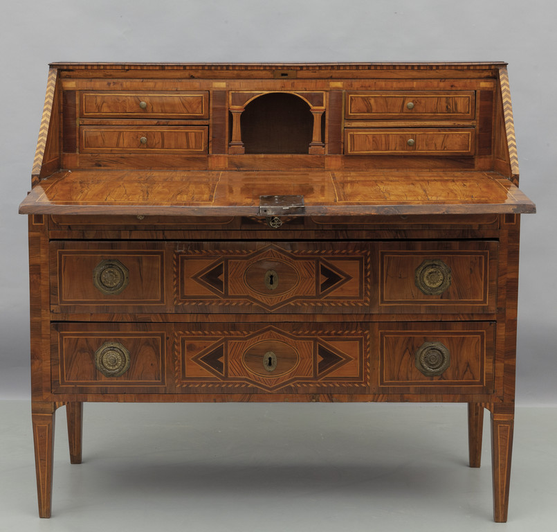 Ribalta Luigi XVI lastronata e finemente intarsiata fine sec.XVIII