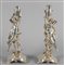 Coppia di candelieri in metallo argentato raffiguranti figure femminili che sorreggono un vaso