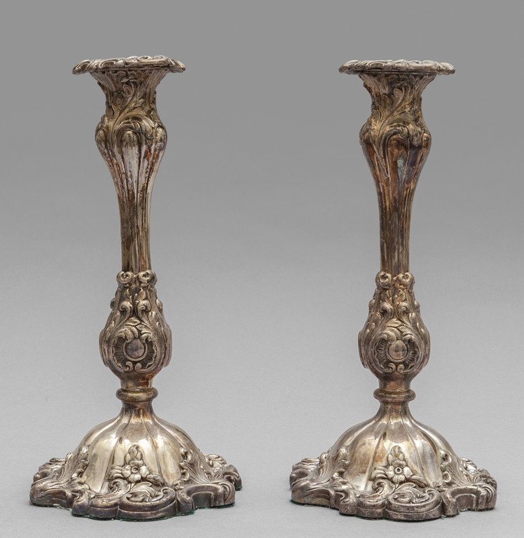 Coppia di candelieri Luigi Filippo in metallo argentato sec.XIX