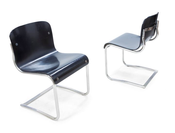 BARTOLI CARLO 920 Due sedie con struttura smontabile in tubi d'acciaio...