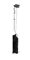Lampada alogena con basamento in trafilato metallico verniciato nero, distanziali e stelo in metallo cromato.