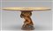 Tavolino da sofà piano ovale in noce sostenuto da un putto in legno intagliato
