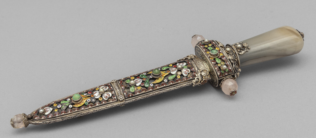 Tagliacarte in argento finemente smaltato con ricca applicazione in pietre dure manico in agata arte Russa sec.XIX