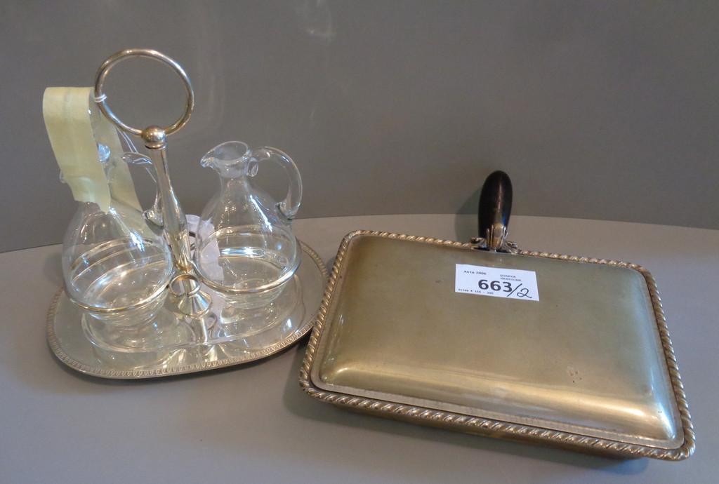 Raccoglisigarette in argento con manico in legno e oliera in argento