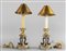 Coppia di candelieri in bronzo dorato e brunito tre draghetti in bronzo brunito sostengono un cestino in bronzo Francia fine sec.XIX
