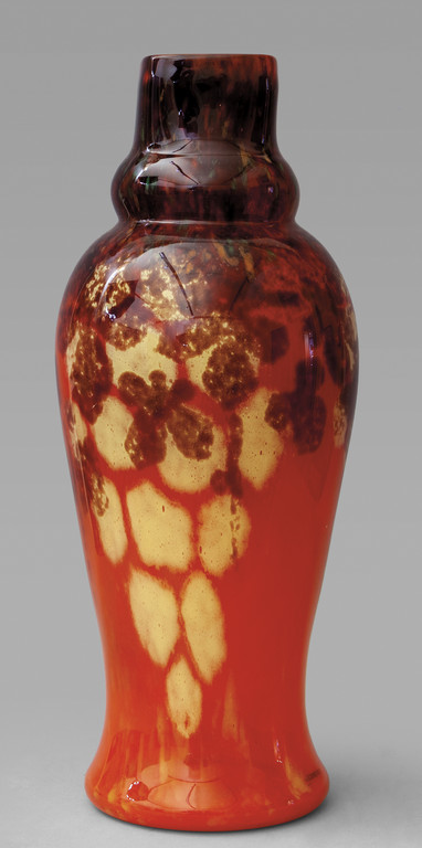 Vaso in vetro tecnica a doppio e triplo vetro con uso di polveri colorato color 'tango' f.to sul piede