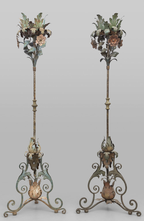 Coppia di torcere in bronzo e ferro policromo Piemonte sec.XVIII