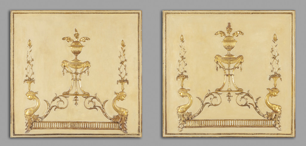 Coppia di pannelli Luigi XVI in legno intagliato e policromato Piemonte sec.XVIII