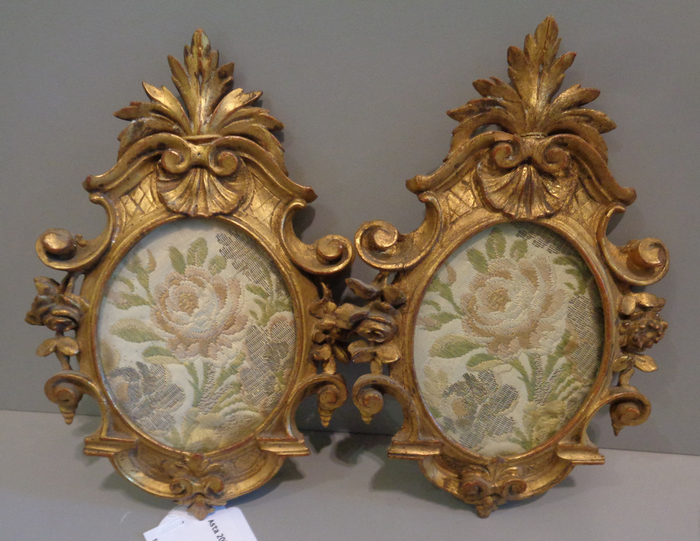 Coppia di cornicette in legno intagliato e dorato sec.XX
