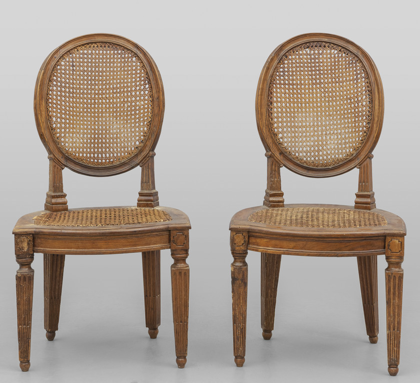 Coppia di sedie ovaline in noce Genova sec.XVIII