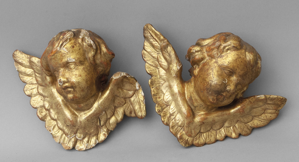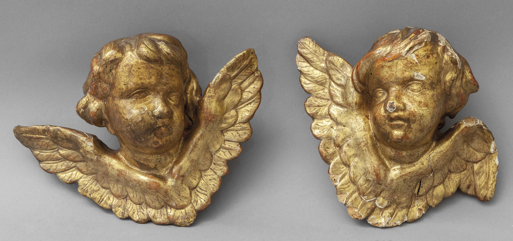 Coppia di angioletti in legno intagliato e dorato sec.XVIII