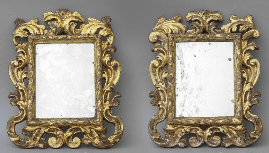 Coppia di specchierine Luigi XIV in legno intagliato e dorato sec.XVIII