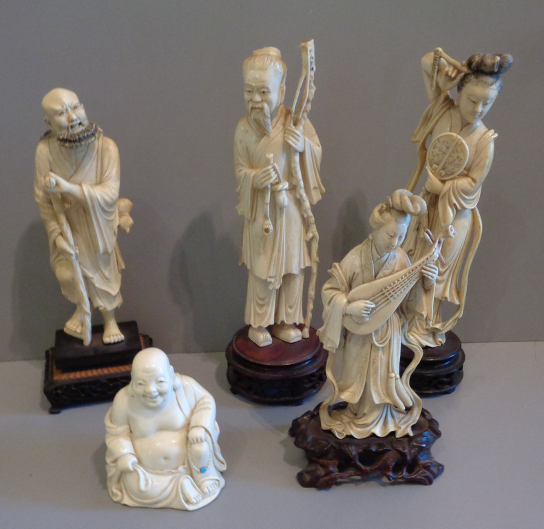 Cinque statuine in avorio scolpito di varie misure Cina fine sec. XIX
