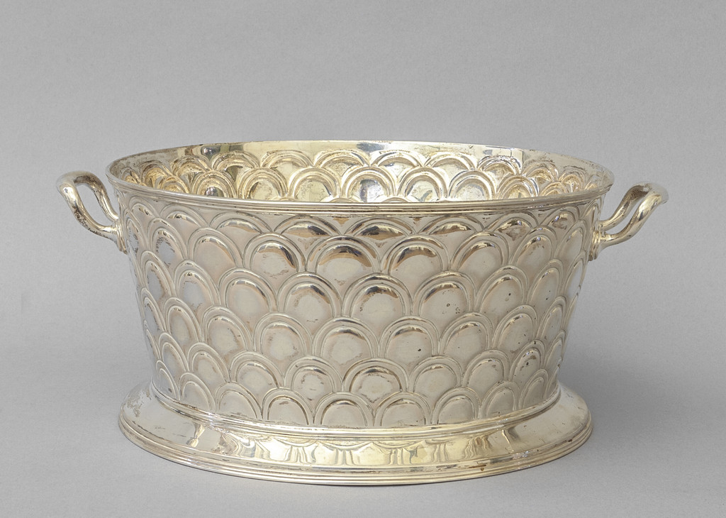 Centrotavola a forma di cestino in argento con manici