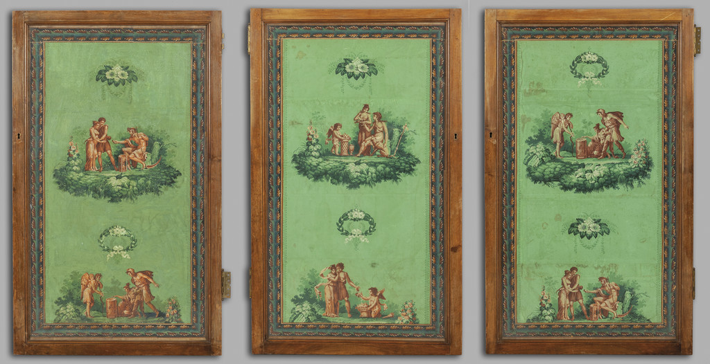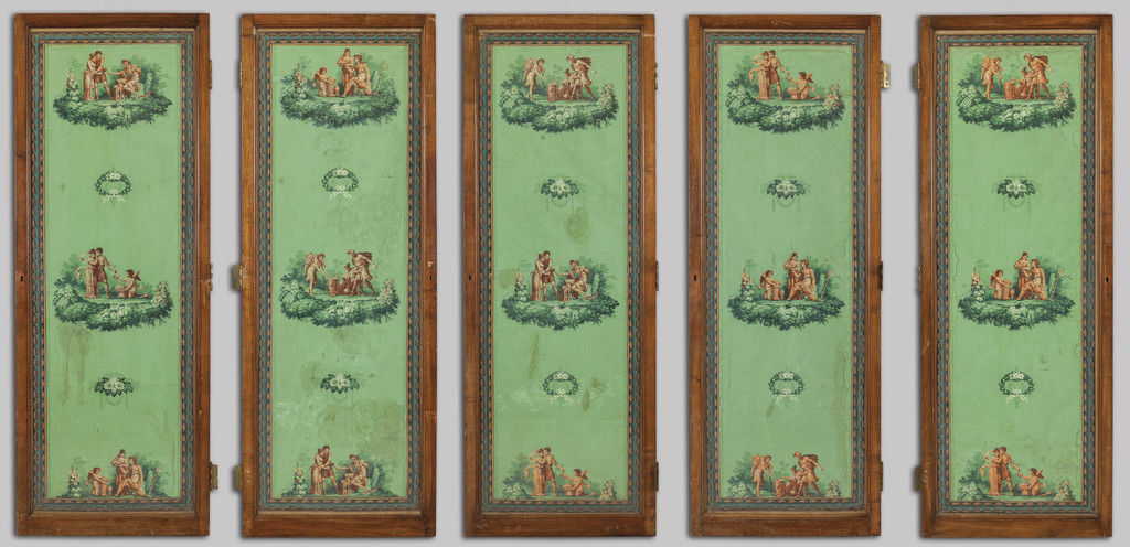 Cinque più tre pannelli decorati a tempera con scene classiche Francia inizi sec.XIX