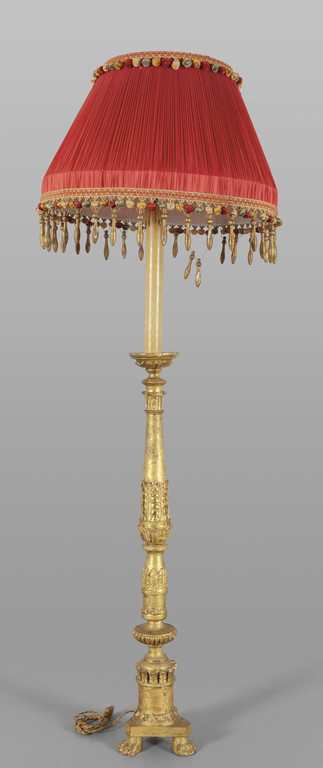 Piantana in legno finemente intagliato e dorato a mecca da centro Centro Italia metà sec.XVIII