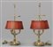 Coppia di bouillottes in bronzo dorato con paralumi in tolla rossa