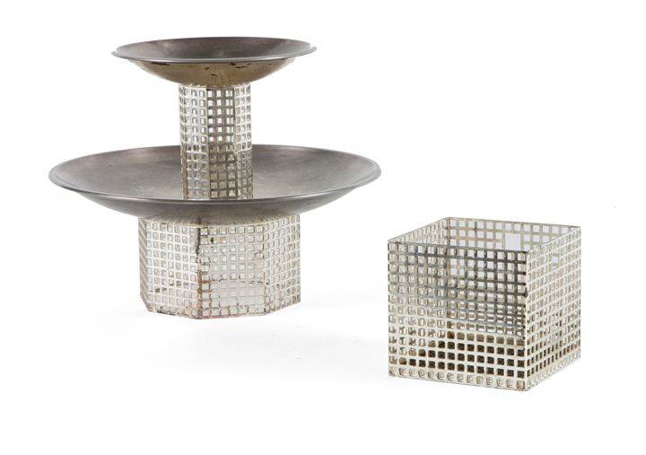 HOFFMAN JOSEF Lotto di due oggetti in metallo argentato. Riedizione BF Plast...