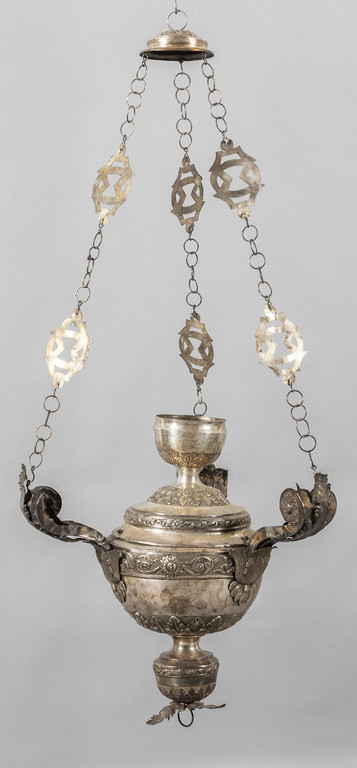 Grande lampada votiva Luigi XVI in argento cesellato Punzone della Torretta Genova 1821