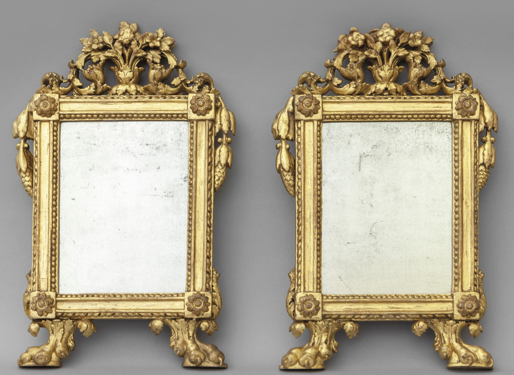 Coppia di specchierine Luigi XVI in legno intagliato e dorato sec.XVIII