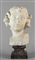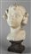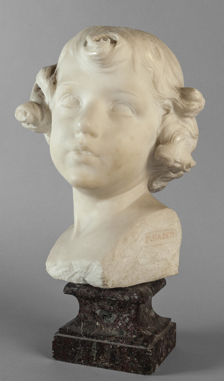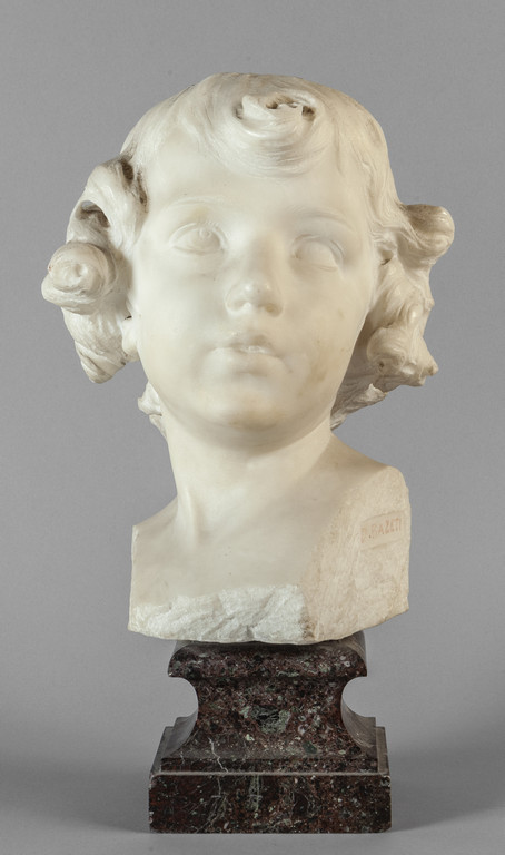 D.Razzeti testa di putto riccioletto scultura in marmo statuario poggiante su base in breccia rossa