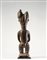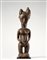 :“Statuette de femme trapue, les mains posée sur le bas du ventre. Haut coiffure asymétrique fait de deux grands chignons et de tresses, petit scarifications sur le cou at au sommet du dos“ Haut 0,49 m / 19,2 inches (15.000/25.000 F.F.)