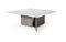 Tavolino in acciaio inossidabile con base costituita da due blocchi di calcestruzzo stampato.
