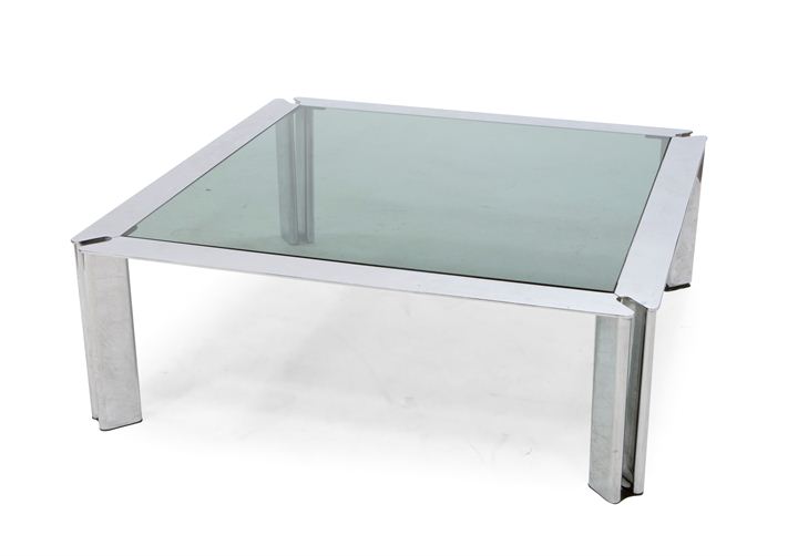 TAVOLINO Tavolino con struttura in acciaio e piano in cristallo. 1970 circa...