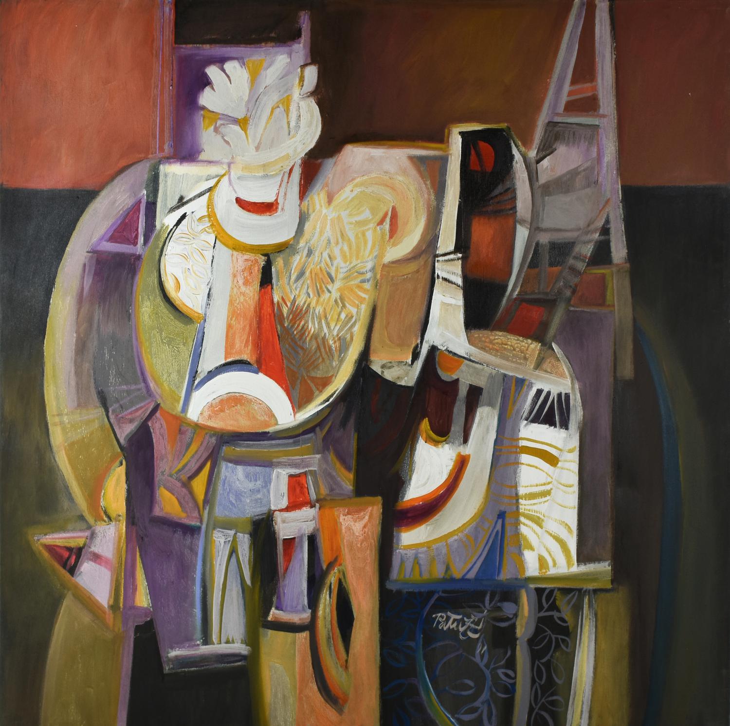 Franco Patuzzi NATURA MORTA NELLO STUDIO olio su tela, cm 100x100 firma sul...