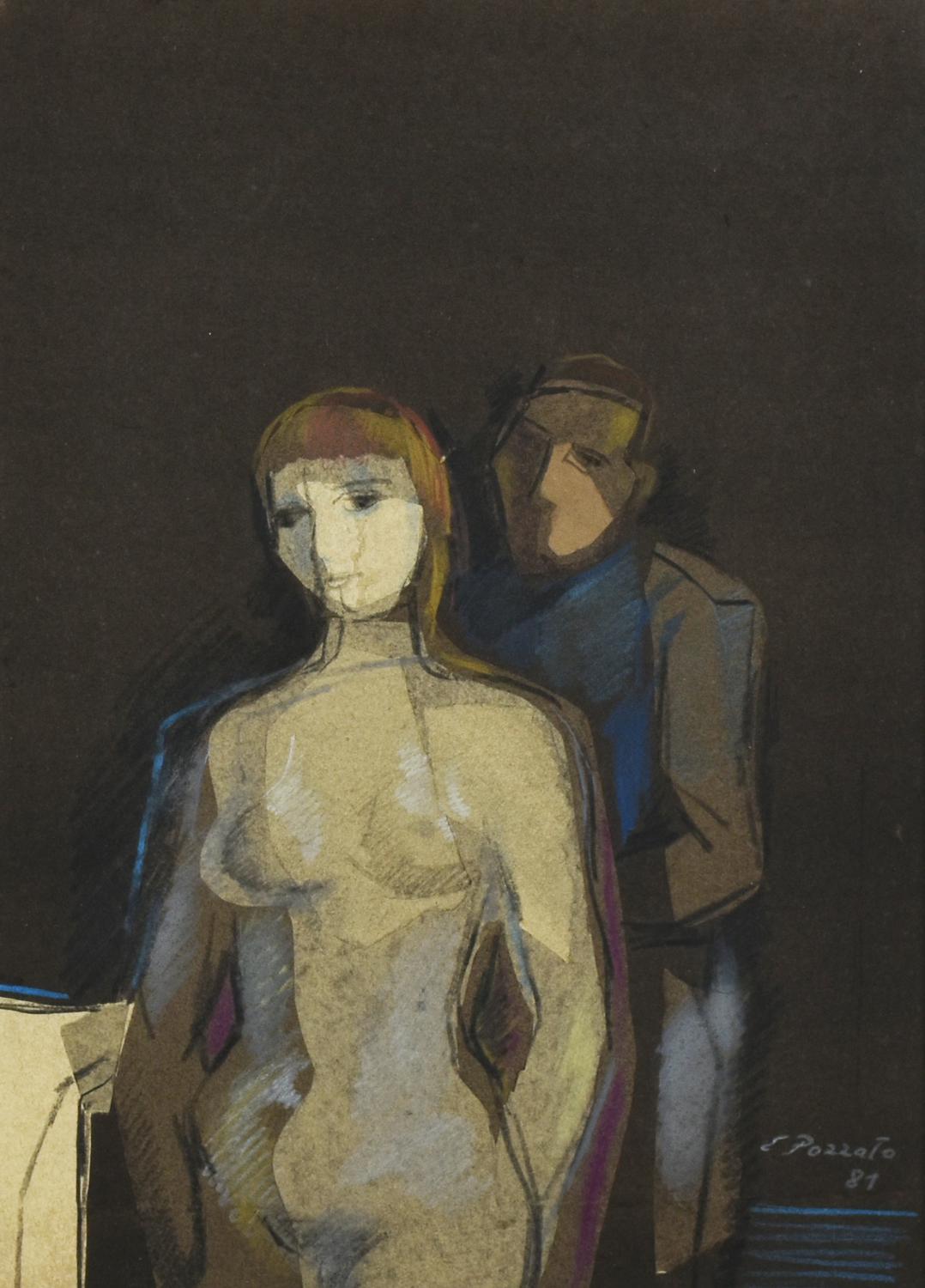 Lotto 39 | Epifanio Pozzato ATTENZIONI tecnica mista su carta, cm 36x26 firma e data...