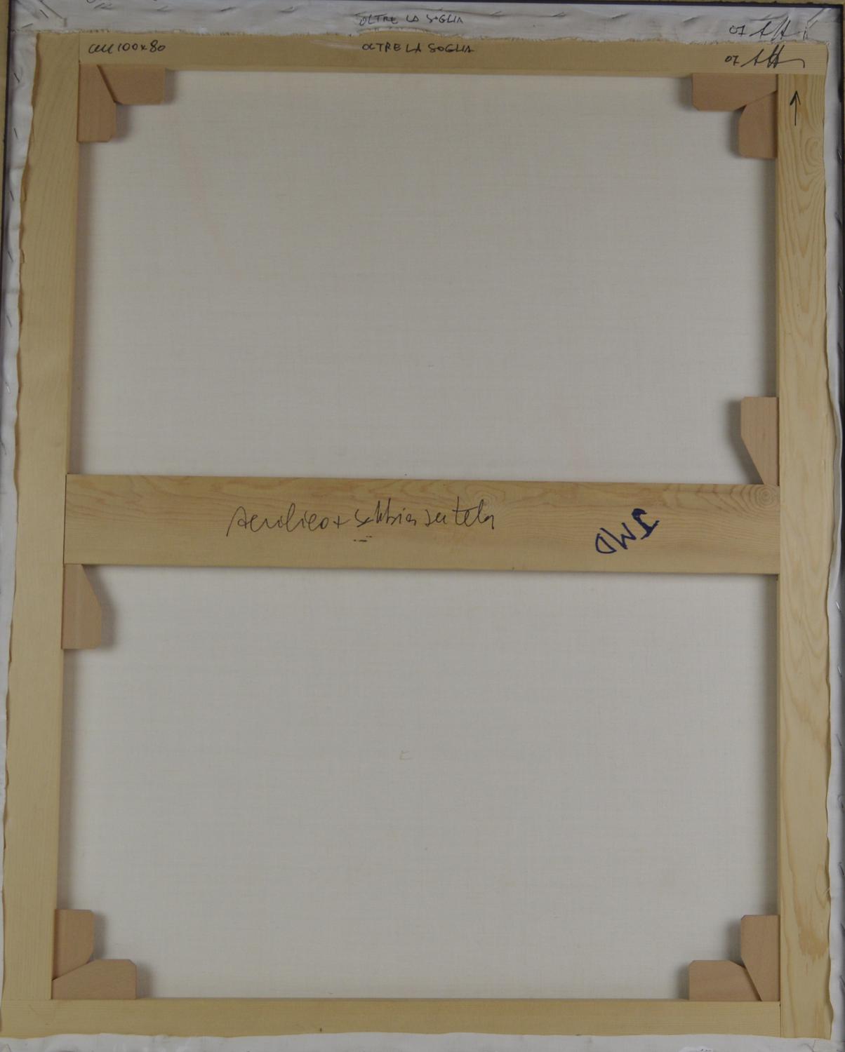 Agostino Ferrari OLTRE LA SOGLIA acrilico su tela, cm 100x80 sul retro:...